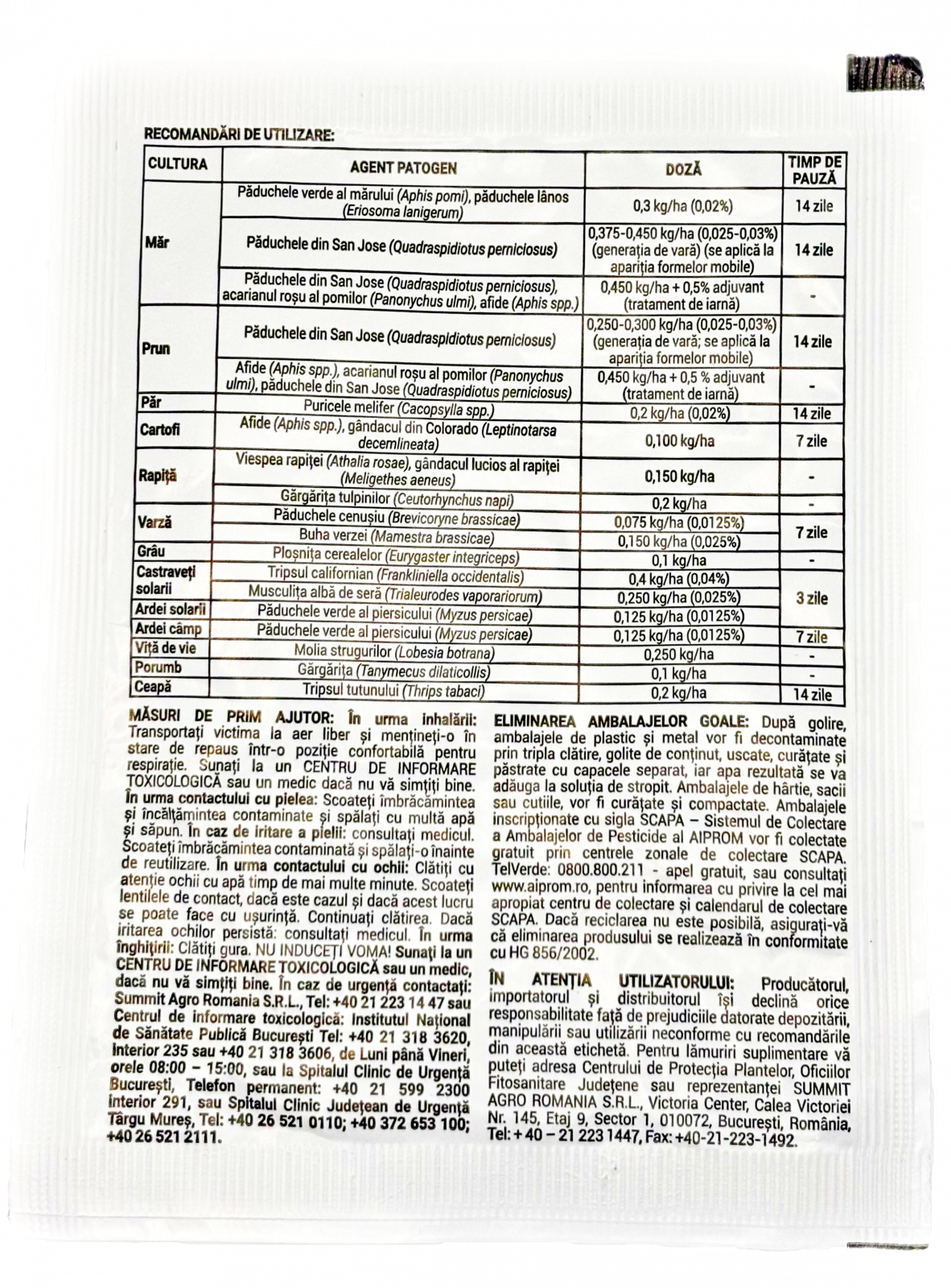 Este necesar ca de la aplicarea ultimului tratament pana la recoltare(consumare) sa treaca un timp in care pesticidul sa se degradeze devenind astfel netoxic pentru consumatori (timp de pauza) PLANTICO recomanda consultarea prospectului.