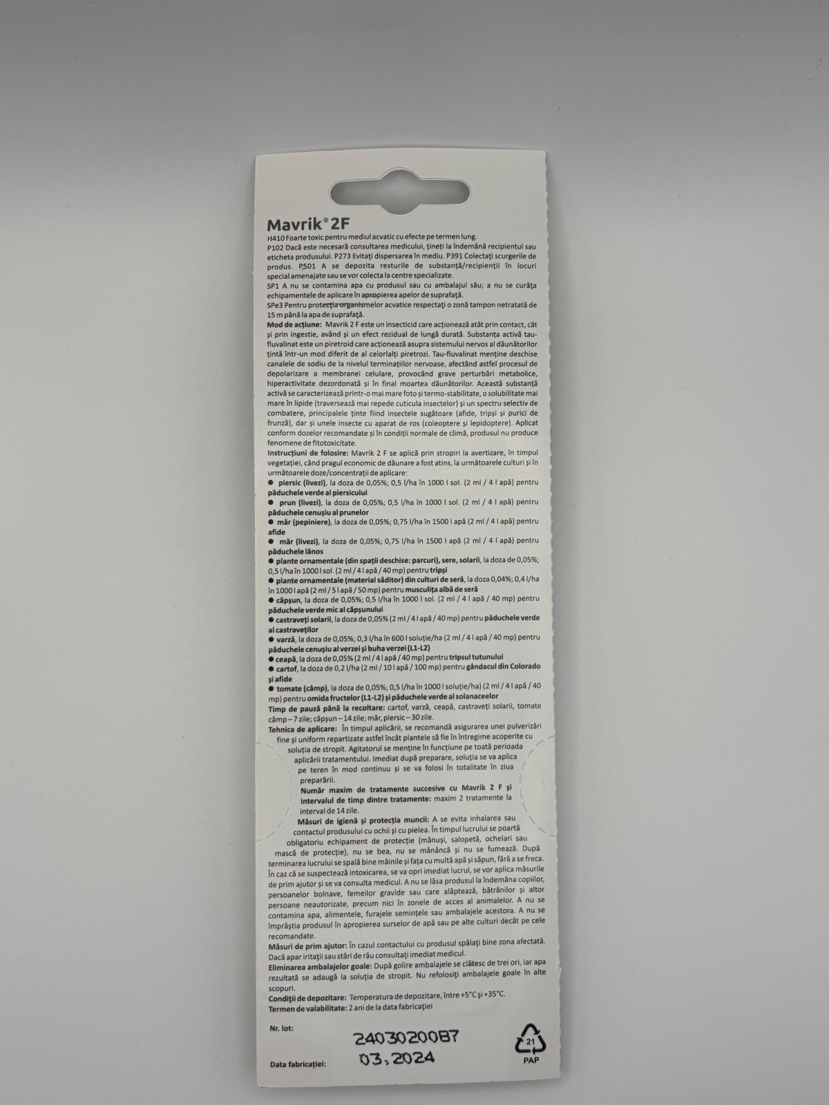 Mavrik 2F - Insecticid piretroid de ultima generatie pentru combaterea daunatorilor la cartof, grau, cereale, legume, pomi fructiferi, rapita, vita de vie